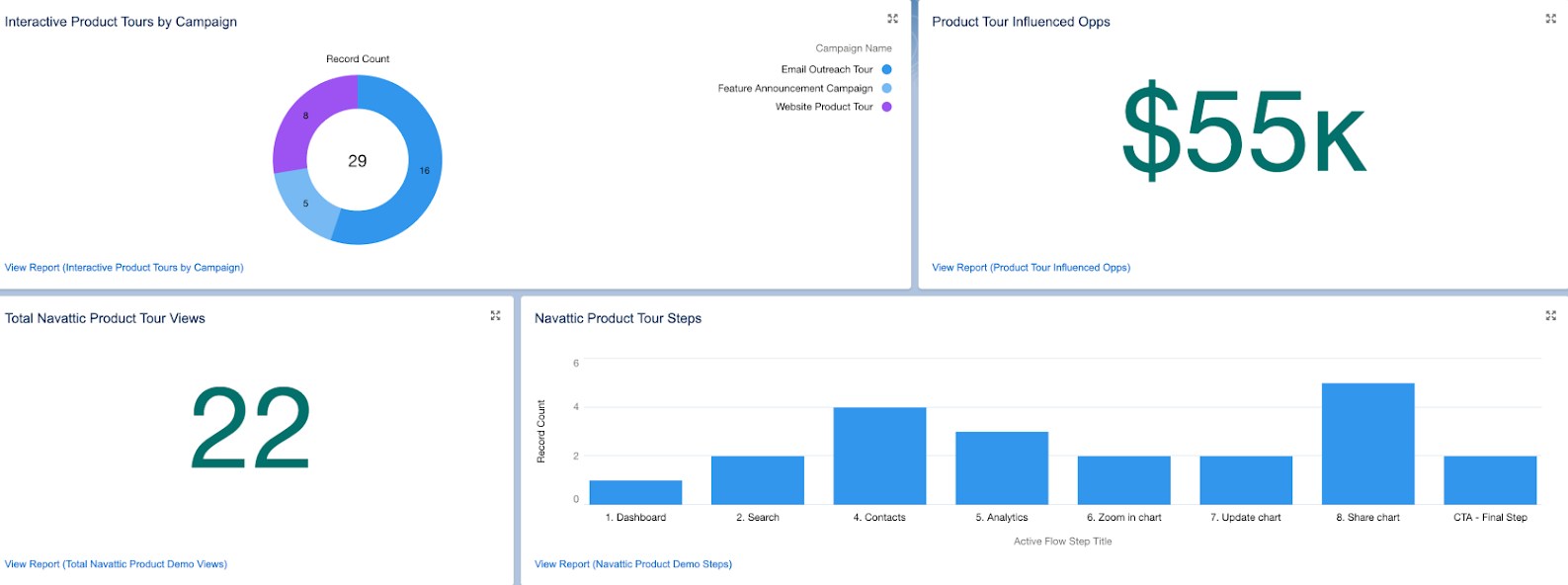 - Create a report in your CRM that shows how many leads interacted with each product tour