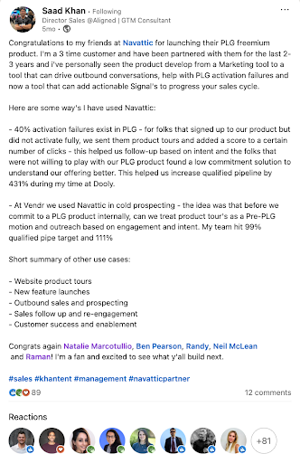 Interactive demos can help you bridge that gap. Saad Khan, a GTM consultant, used Navattic interactive demos in cold prospecting while working at Vendr.