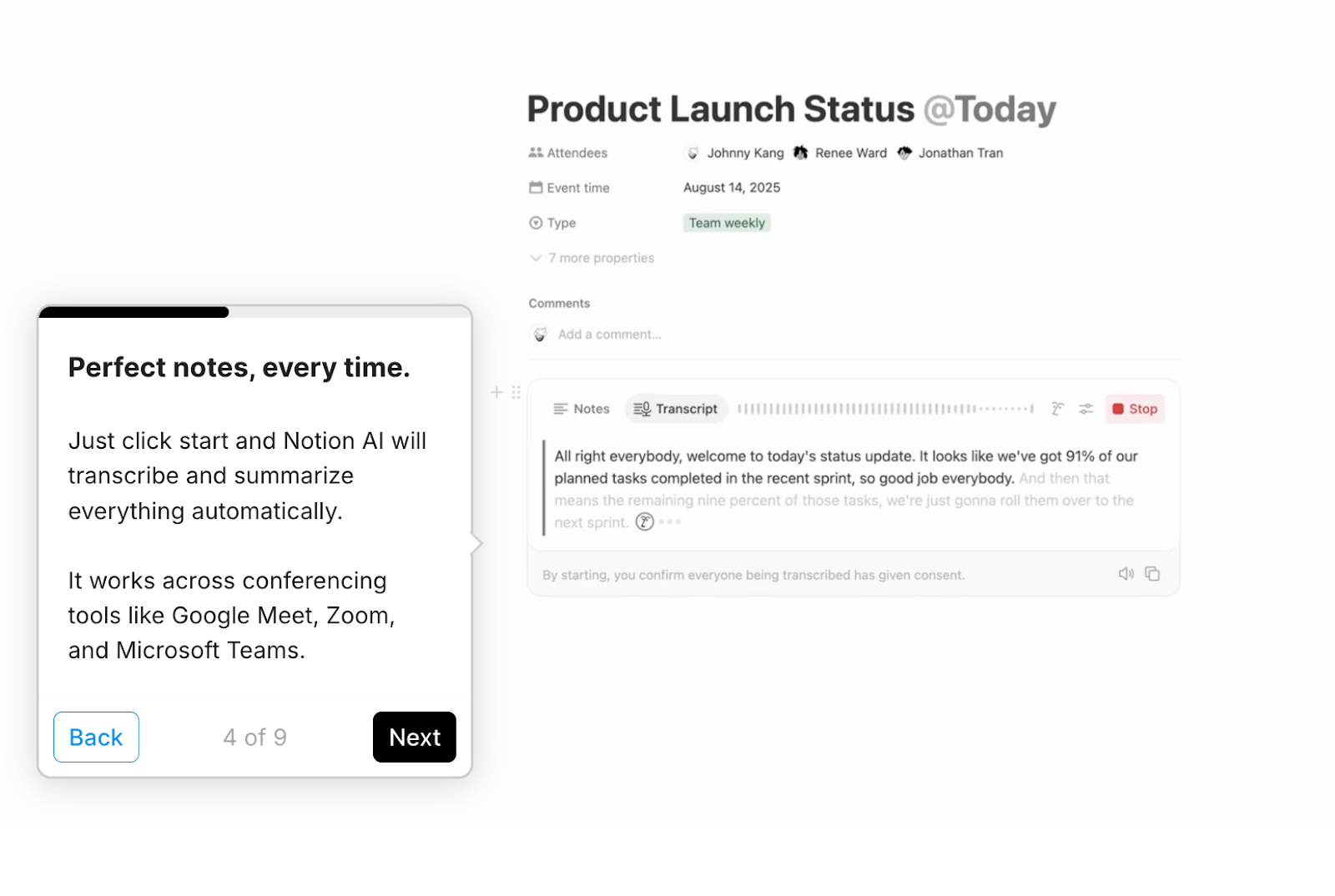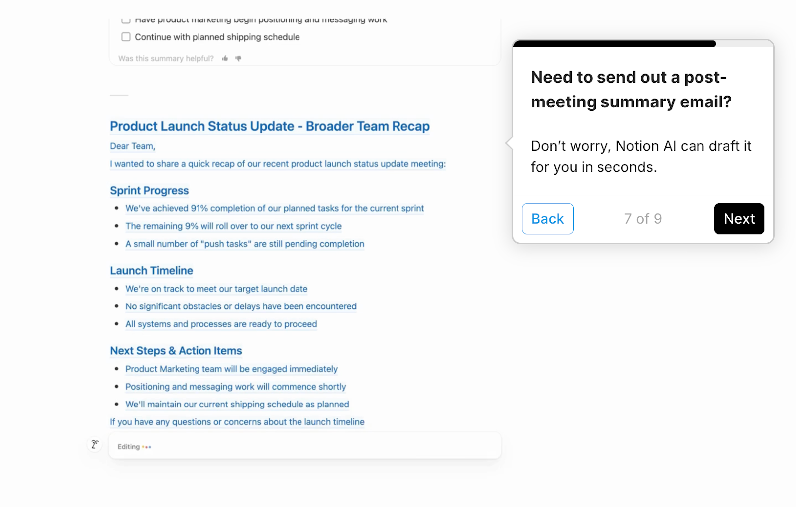 Ultimately, making these features look as if they are functioning “live” helps users feel like they can trust Notion AI to speed up their workflows.