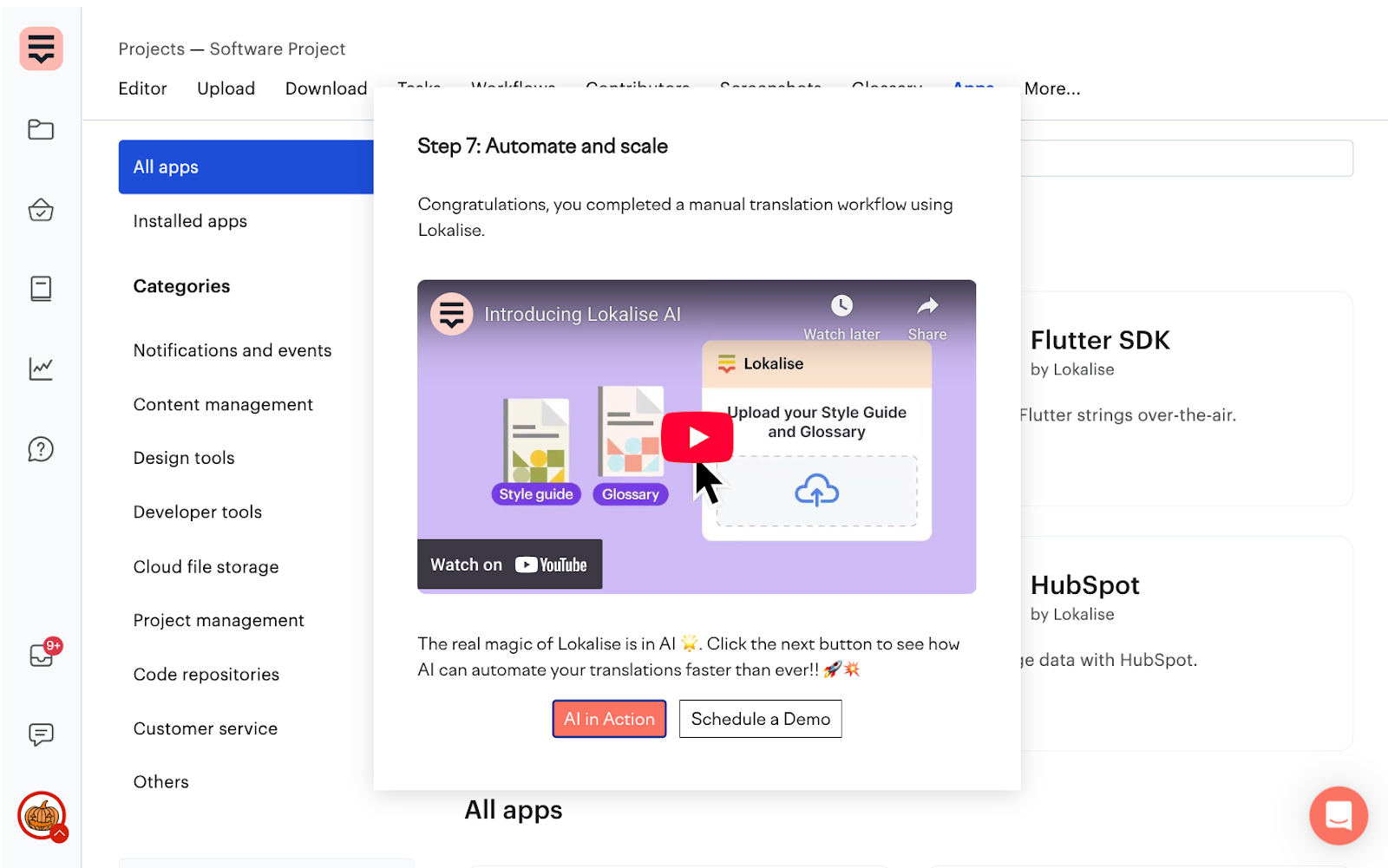 To capitalize on that traffic, they added an invite to see “AI in action” at the end to invite users to walk through a real automated translation workflow: