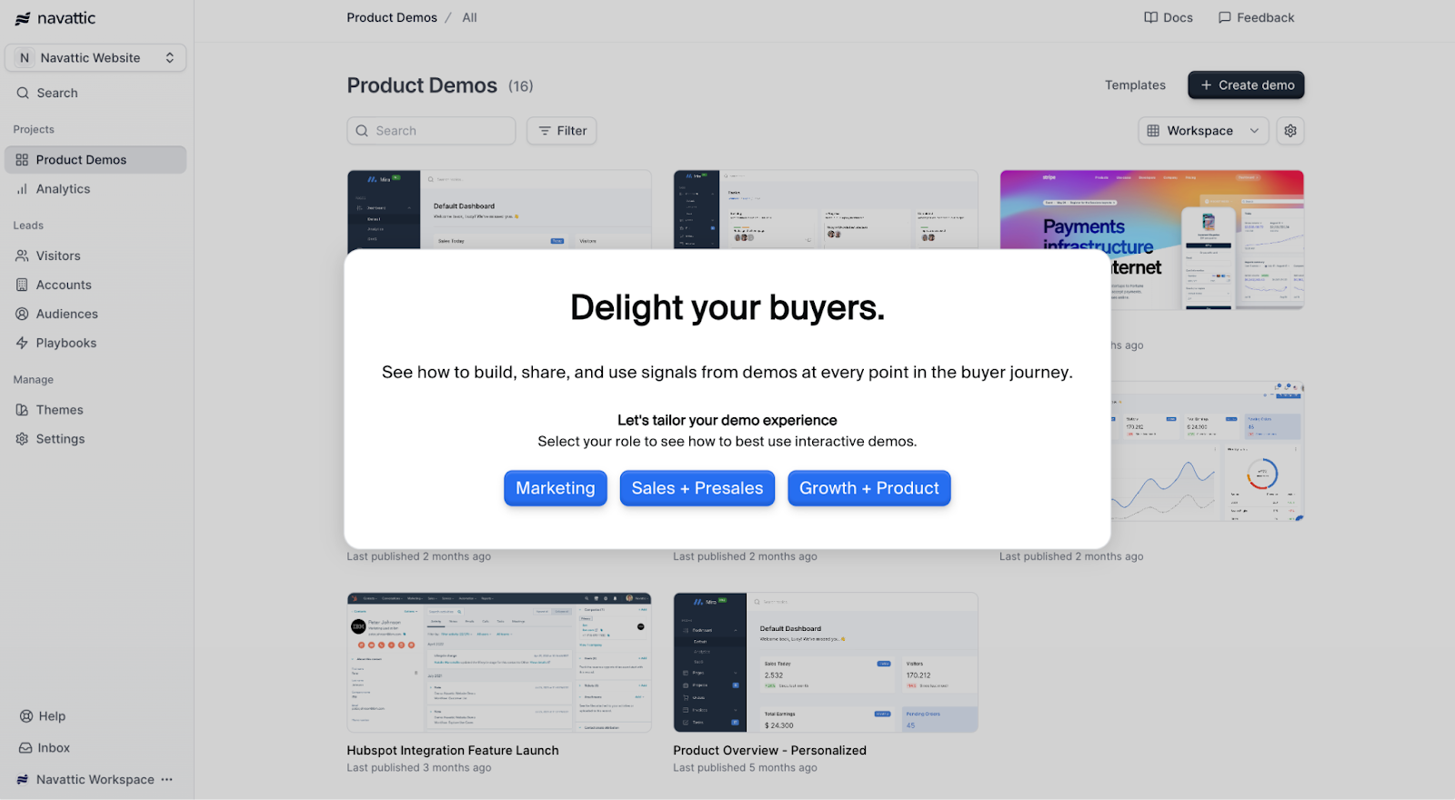 If they click the “Sales + Presales” button, they’ll see a demo of Launchpad, our tool to easily store and share demos.
