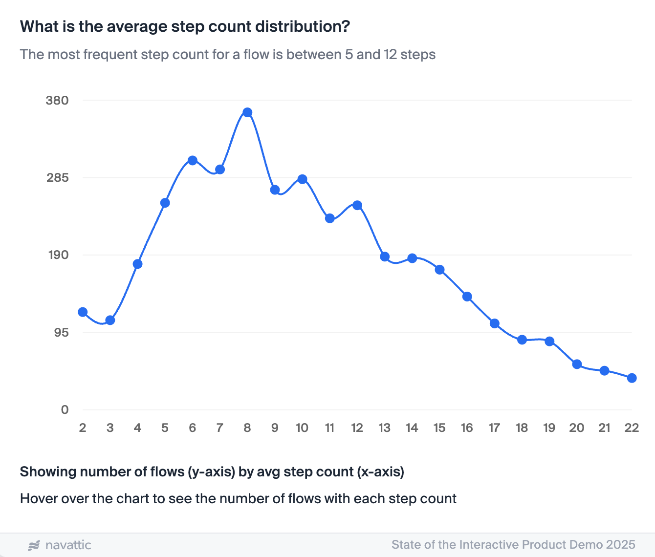 Try to identify what their “aha moment” (when they understand the value) would be and guide them there within the first couple of steps. According to our State of the Interactive Product Demo report, the top 1% of demos keep their Flows relatively concise: 5 - 12 steps.