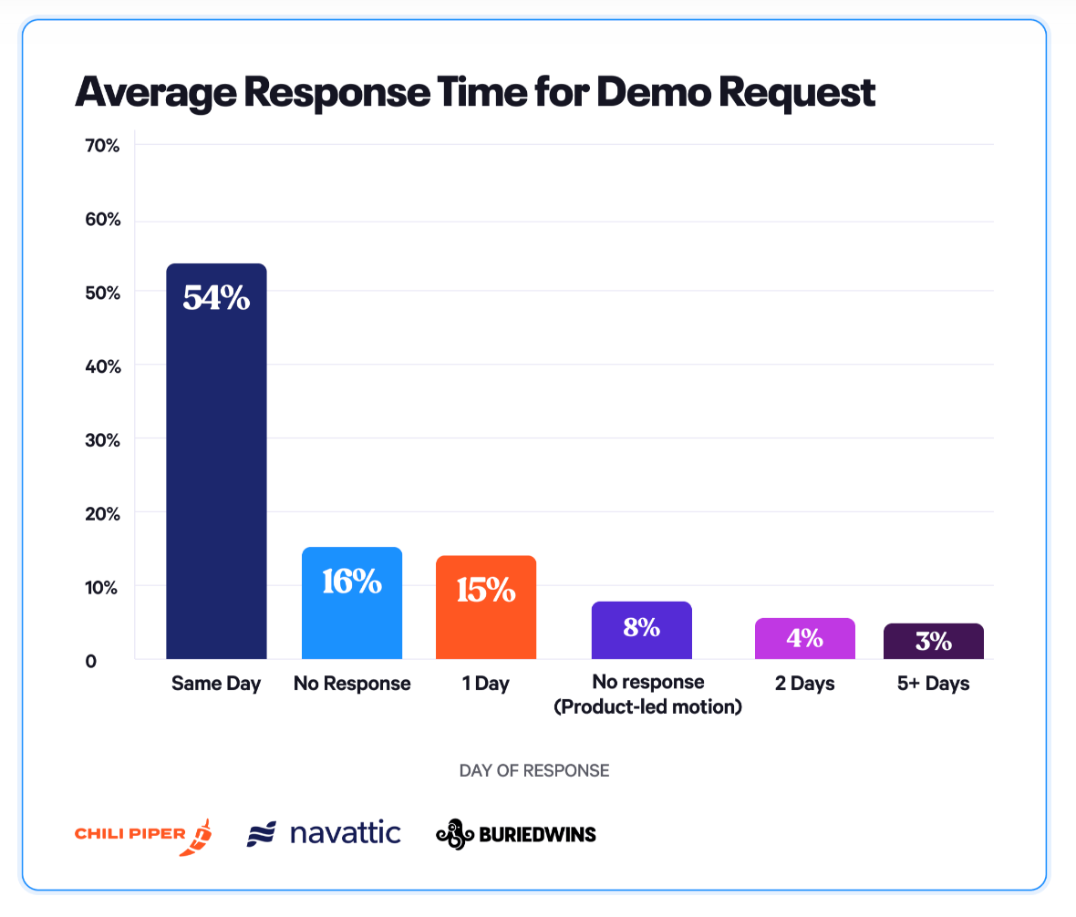 In our 2025 B2B Buyer First Best Practices Report, we found that 69% of the 100 largest B2B SaaS companies respond to demo requests within one day.