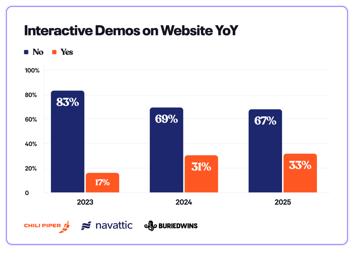 In 2025, roughly 33% of websites had interactive demos (a 2% increase from last year).