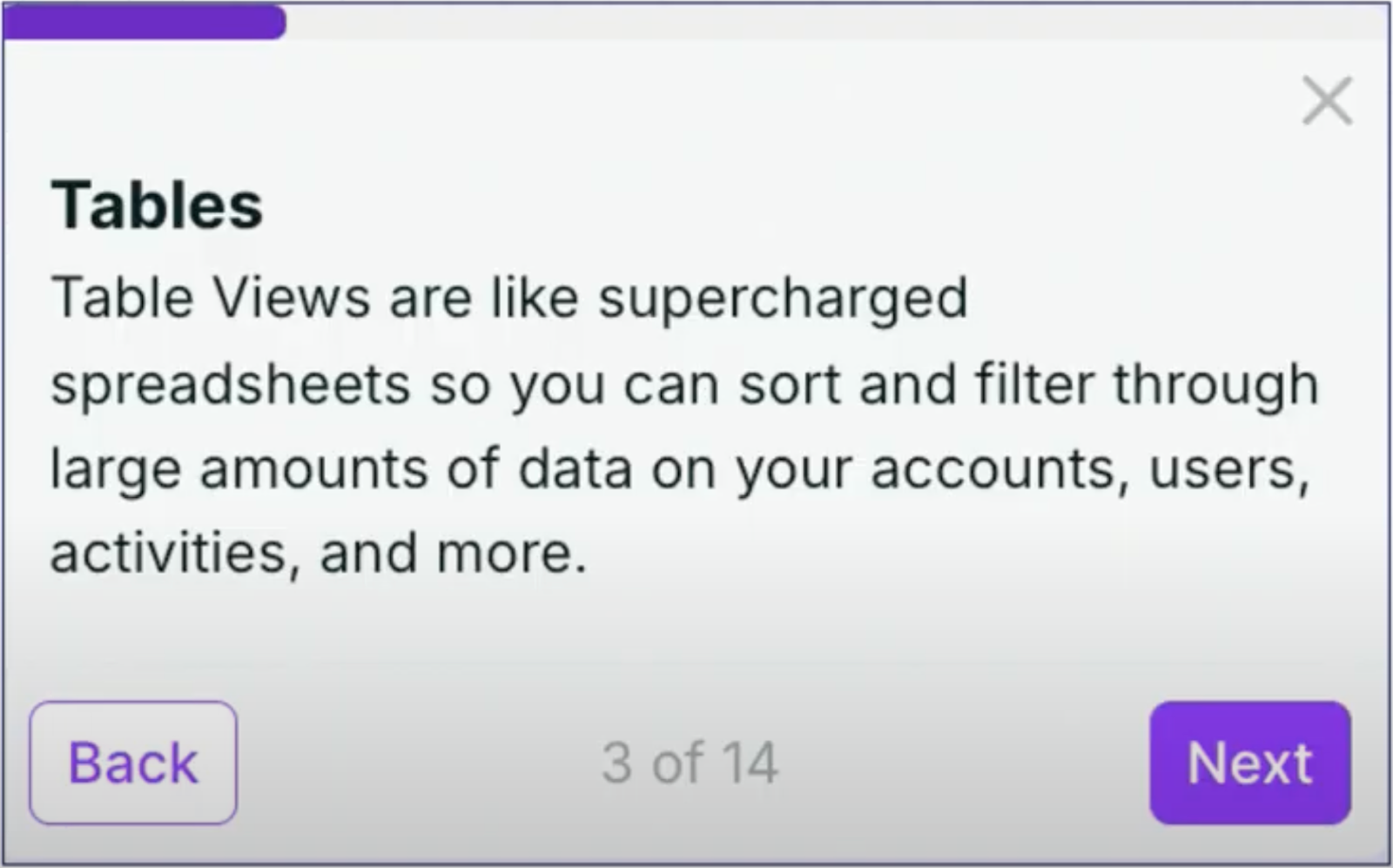 - A 60% engagement rate — that is, 60% of users get past the first step of your demo.