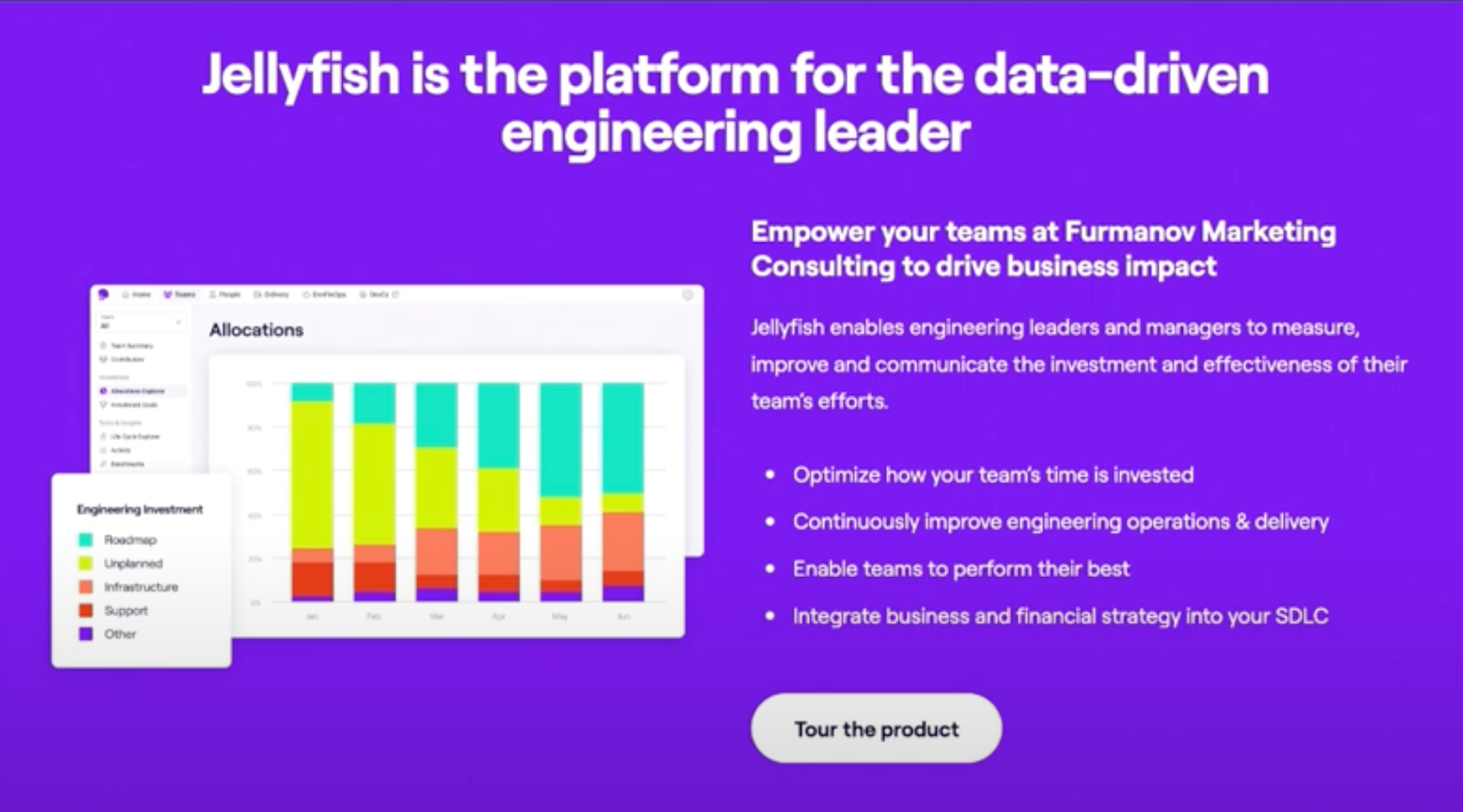 On a different interactive demo landing page, Jellyfish adds a screenshot of the Allocations area of their product as a little preview: